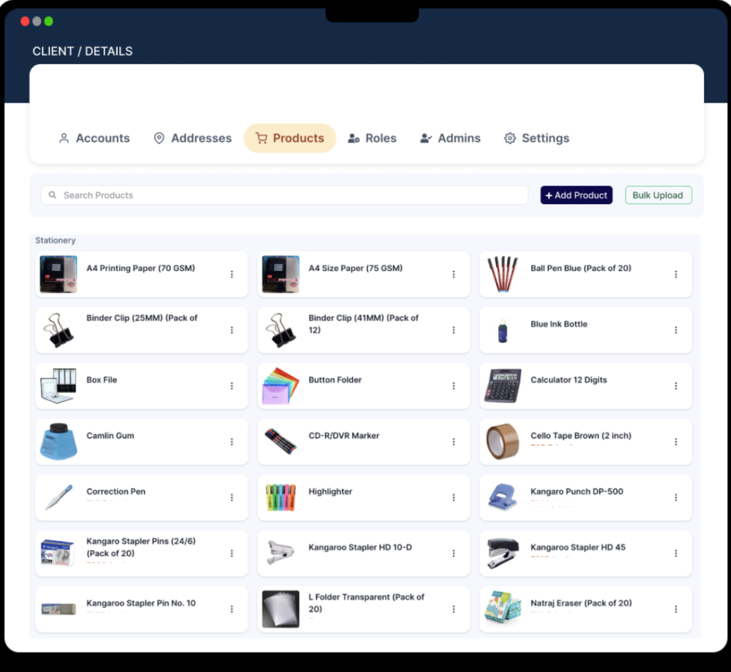 Streamline your corporate and office procurement with our vast selection of categories. Choose from bathroom fixtures, civil and interiors, electronics, kitchen and pantry supplies, medical and surgical equipment, nitrile/latex/vinyl gloves, packaging, pest management, stationery, tools and hardware, waste management, cleaning equipment, specialized chemicals, feminine hygiene, gifting, housekeeping, mats, office supplies, paper products, safety and security, sports equipment, swimming pool supplies, uniforms, wires and cables, and more. Our platform ensures seamless procurement with integrated supplier management and purchase order management software.